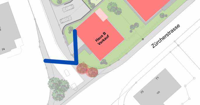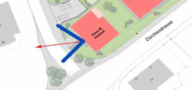 Wir wollen den Hintergrund für Haus B ablichten und die zwei Bäume links davon stehen zwar zum Zeitpunkt der Aufnahme noch, werden jedoch beim Bauen entfernt.