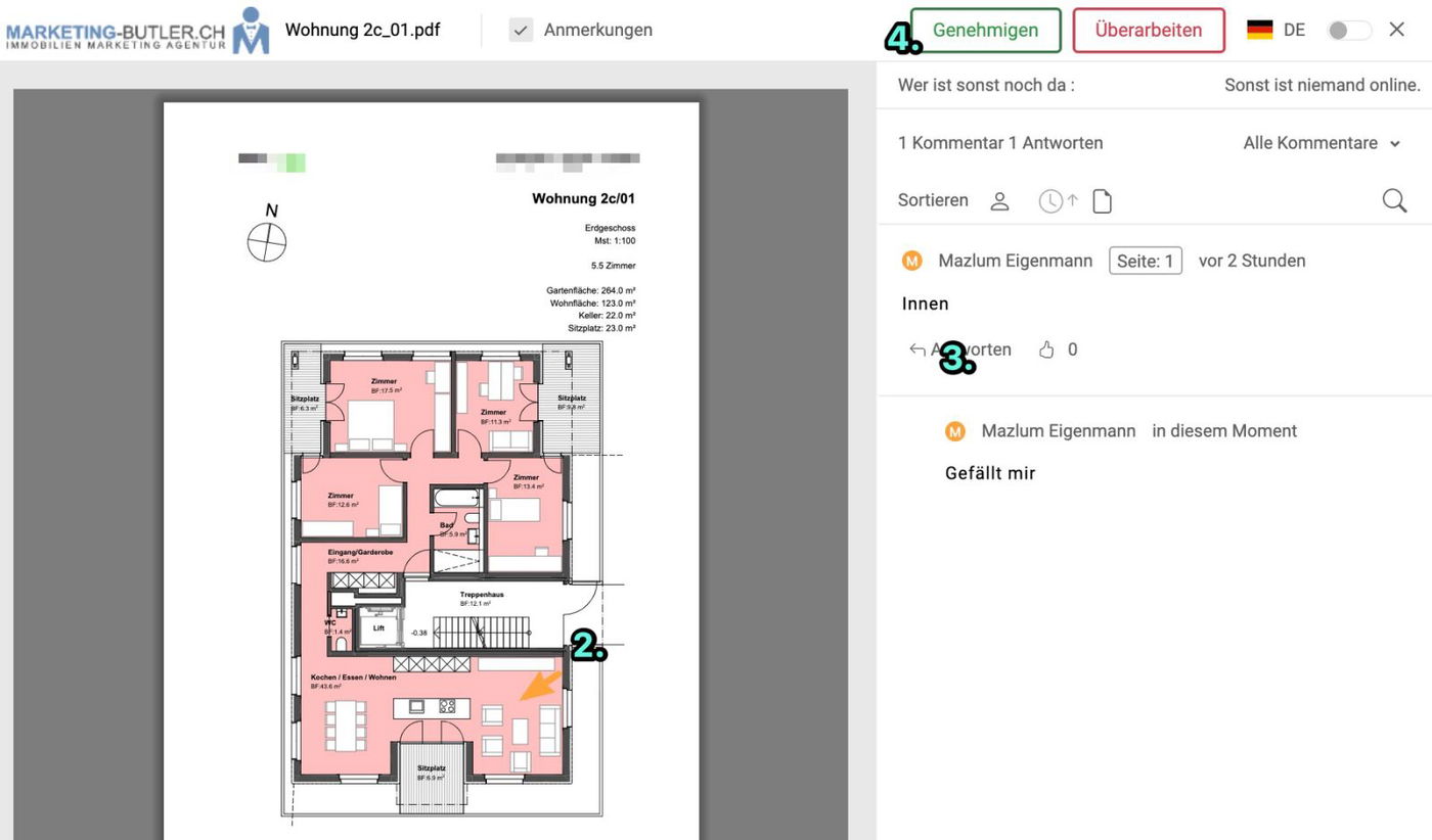 Damit wir wissen, dass Sie mit der Bearbeitung fertig sind, klicken Sie bitte auf "Genehmigen".